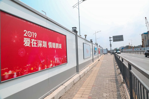 6、安裝好圍擋,就可安排下空的50厘米以上的空間,可以用來做砌磚基礎,增強穩定性、牢固性。由于工程圍擋厚度、顏色美觀度能適應各類客戶,使用時,可以在圍欄上設置施工公告,或者通過招標引入廣告公司設置公益廣告和商業廣告,充分利用和提高空間價值。
