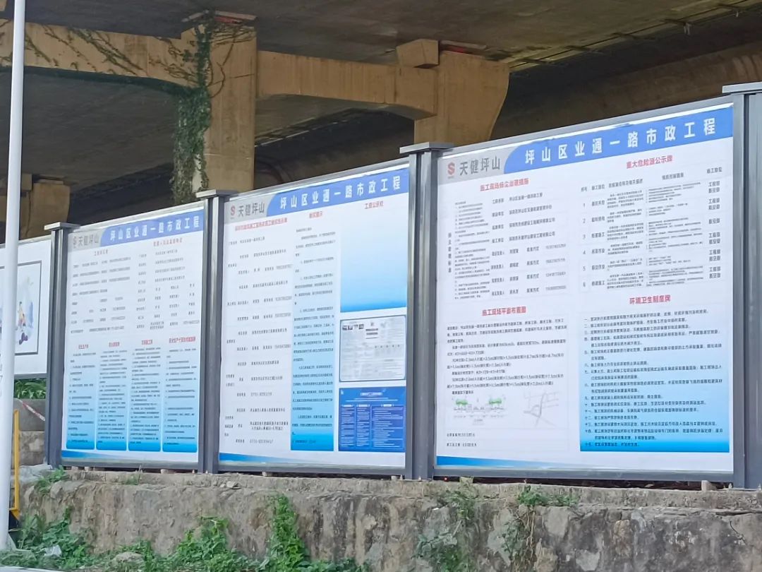 坪山區業通一路的現場,也采用旭東鋼構的B款圍擋,既做到了堅固、穩定,又使圍擋整體整潔、干凈。