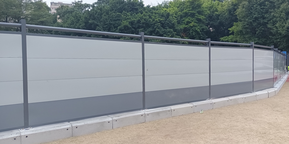 3、施工圍擋全部采用金屬材料,表面噴涂烤漆處理,經(jīng)久耐用、不易褪色、耐腐蝕,可循環(huán)使用5年左右,降低成本。